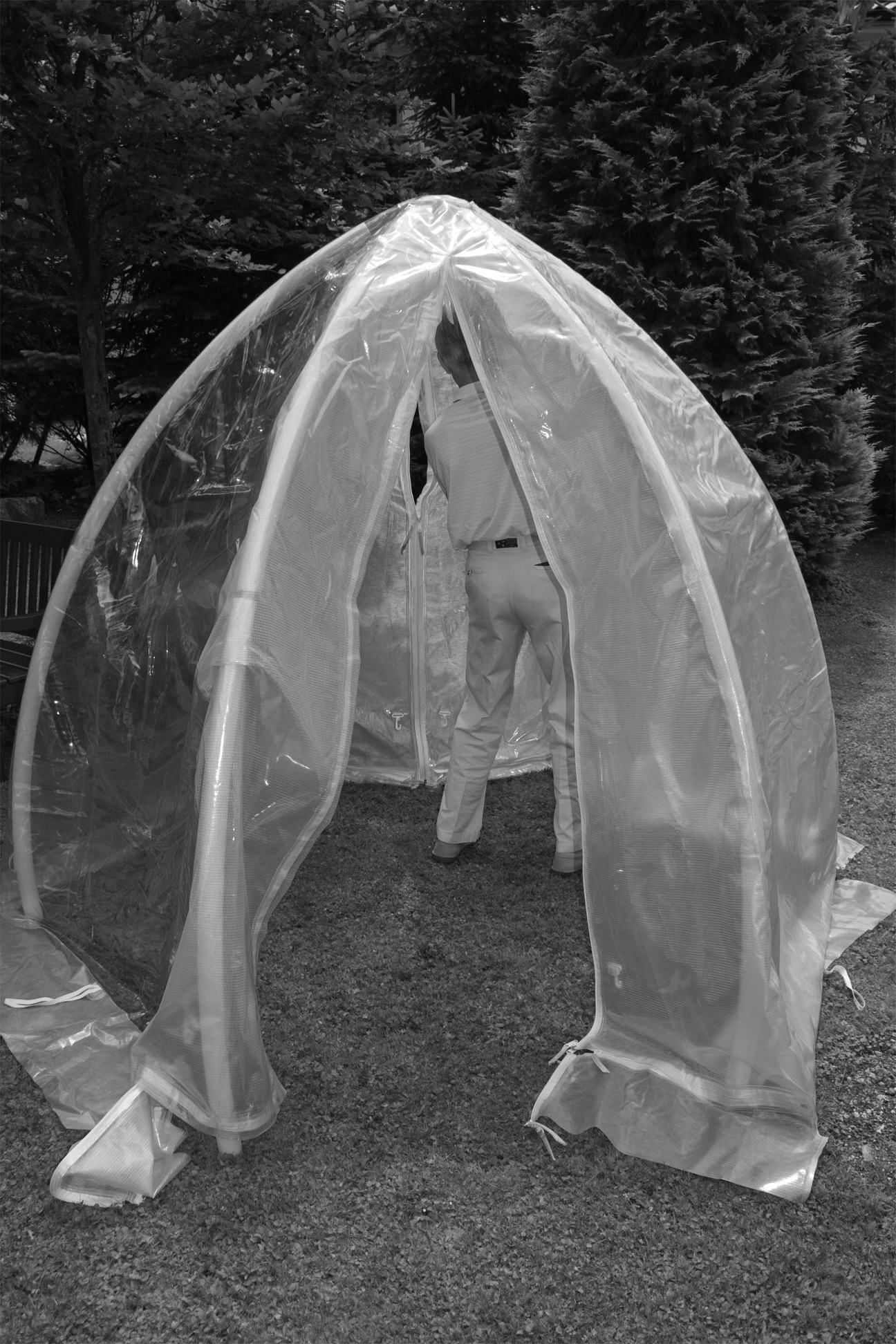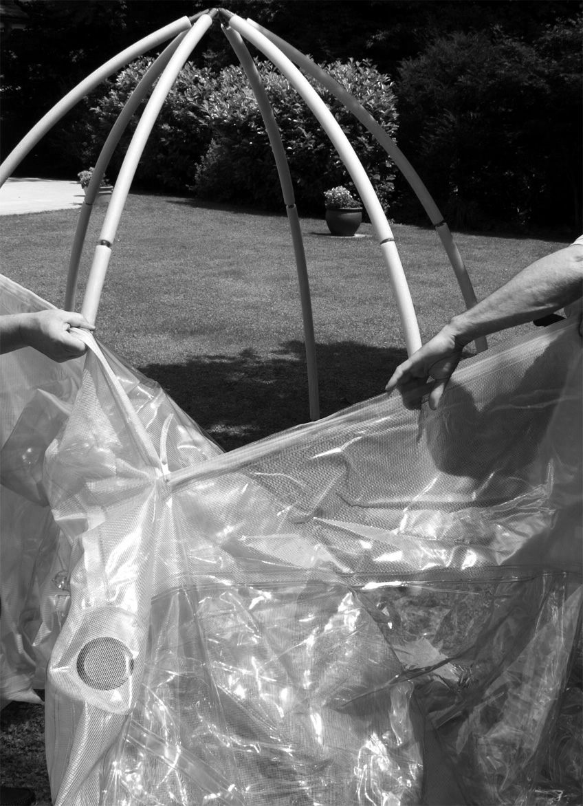 Material | doppelschichtige Folie aus PVC, froststabil bis minus 30°C, Gestänge aus pulverbeschichtetem Stahl, Rohrdurchmesser ca. 25 mm, UV-stabilisiert |